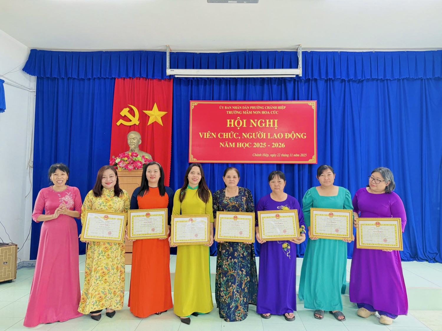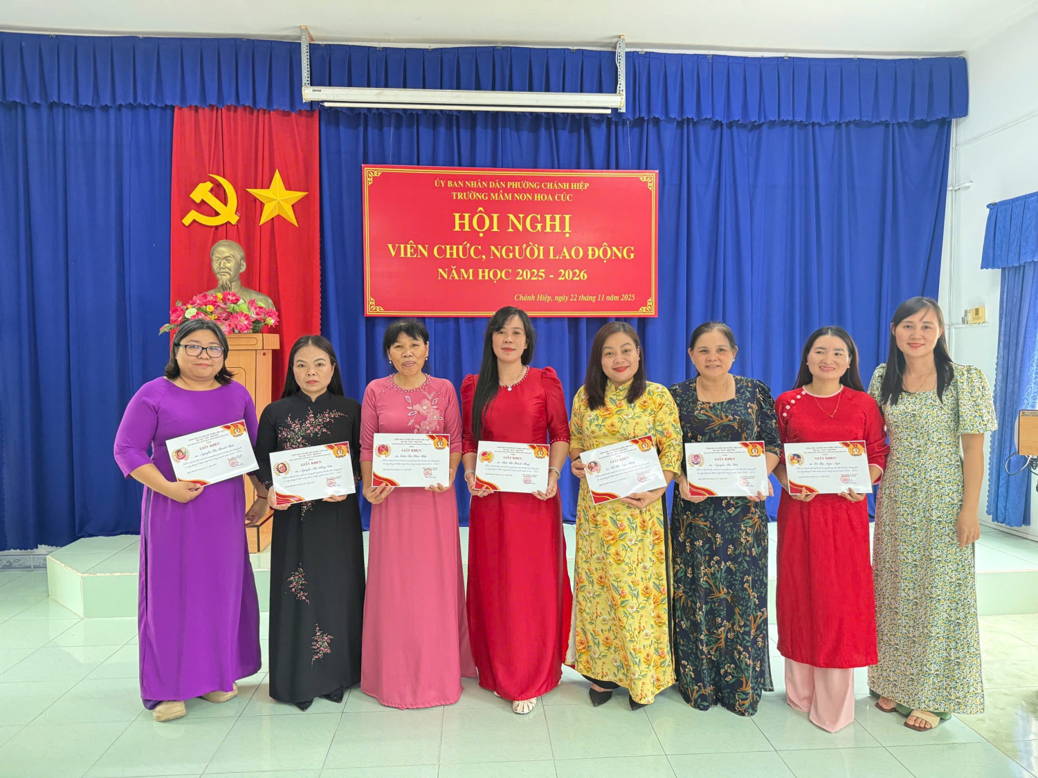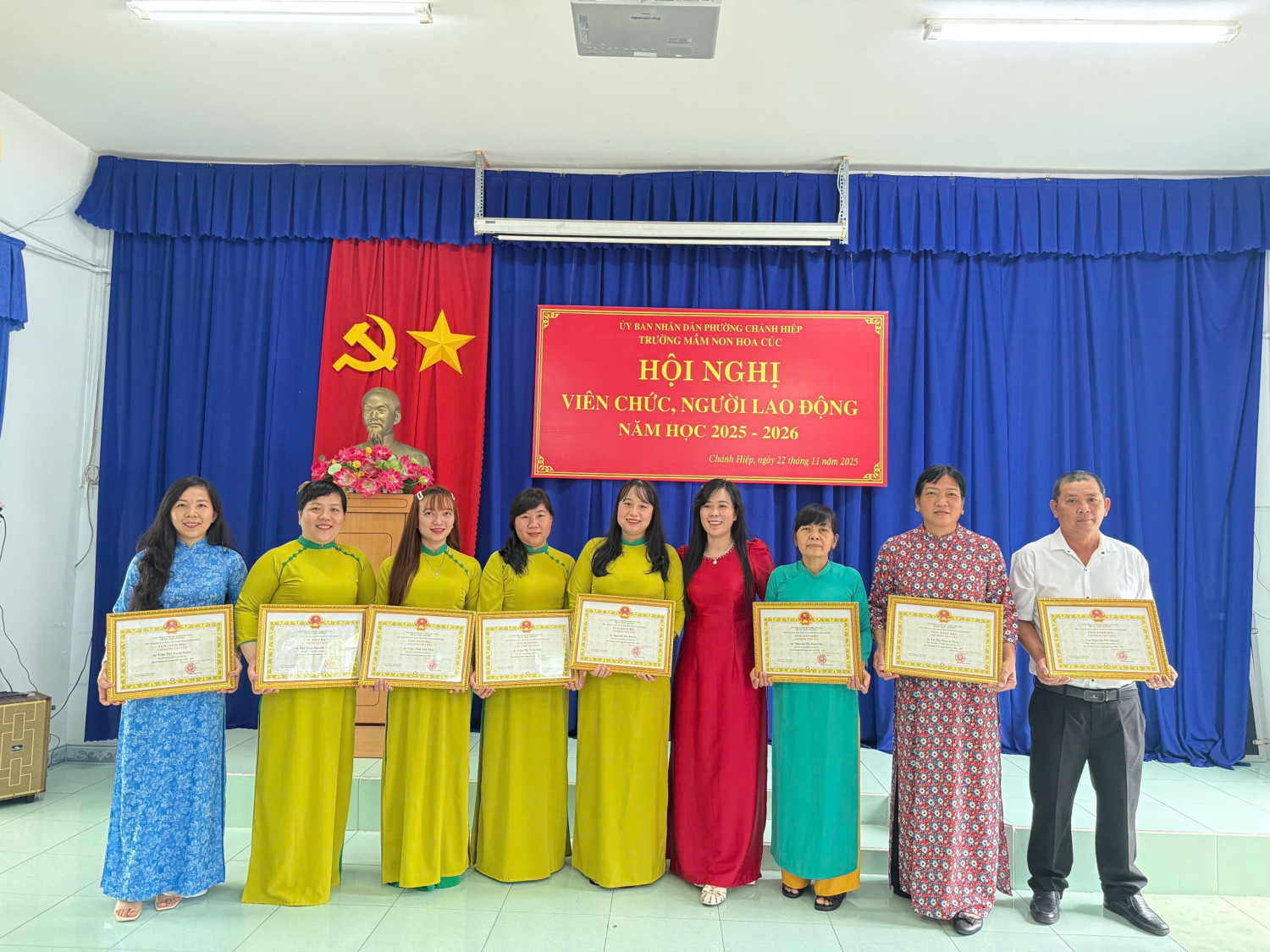 Sáng nay, Ngày 22/11/2025. Trường Mầm non Hoa Cúc đã long trọng tố chức Hội nghị Viên chức - Người lao động năm học 2025 - 2026. Hội nghị nhằm đánh giá kết quả thực hiện nhiệm vụ năm học 2024 - 2025 và thảo luận, thống nhất phương hướng năm học mới năm học 2025 -2026). Tại Hội nghị, Viên chức - NLĐ đã thẳng thắn đóng góp ý kiến xây dựng, thể hiện tinh thần đoàn kết - trách nhiệm