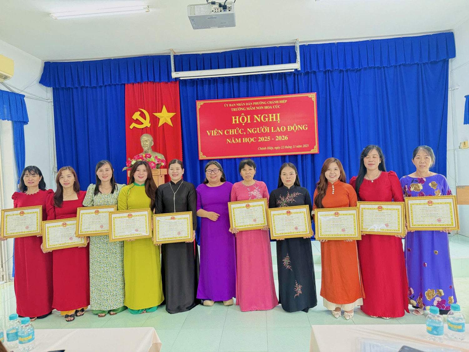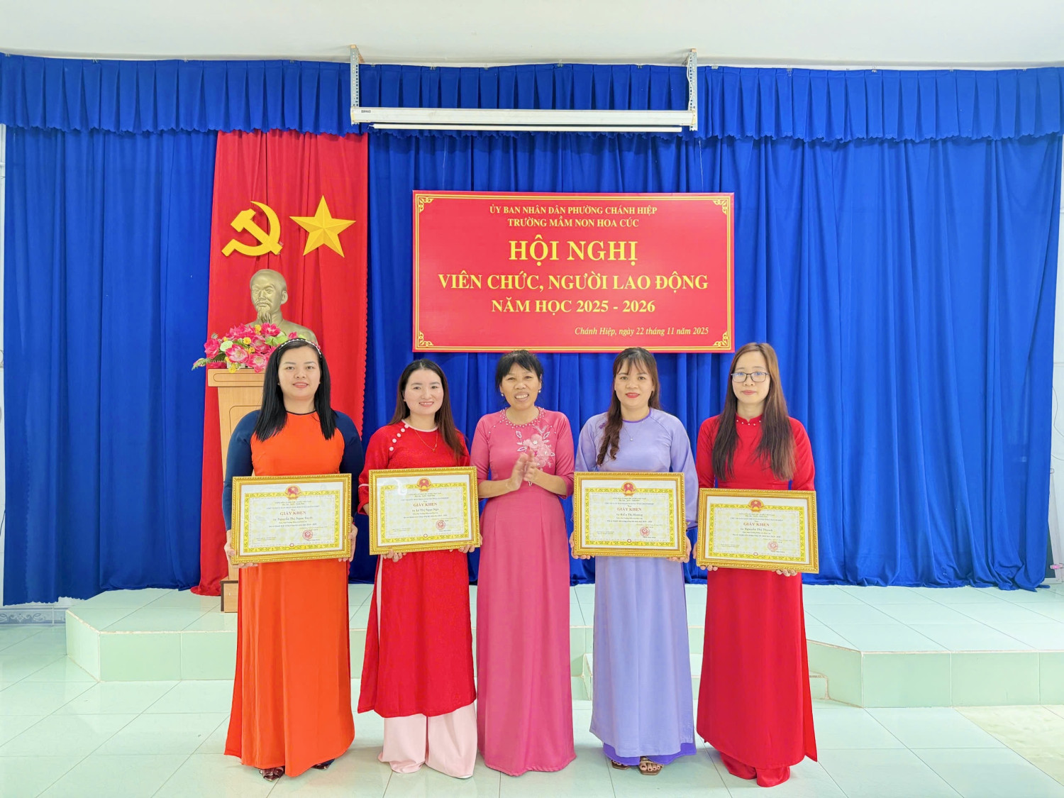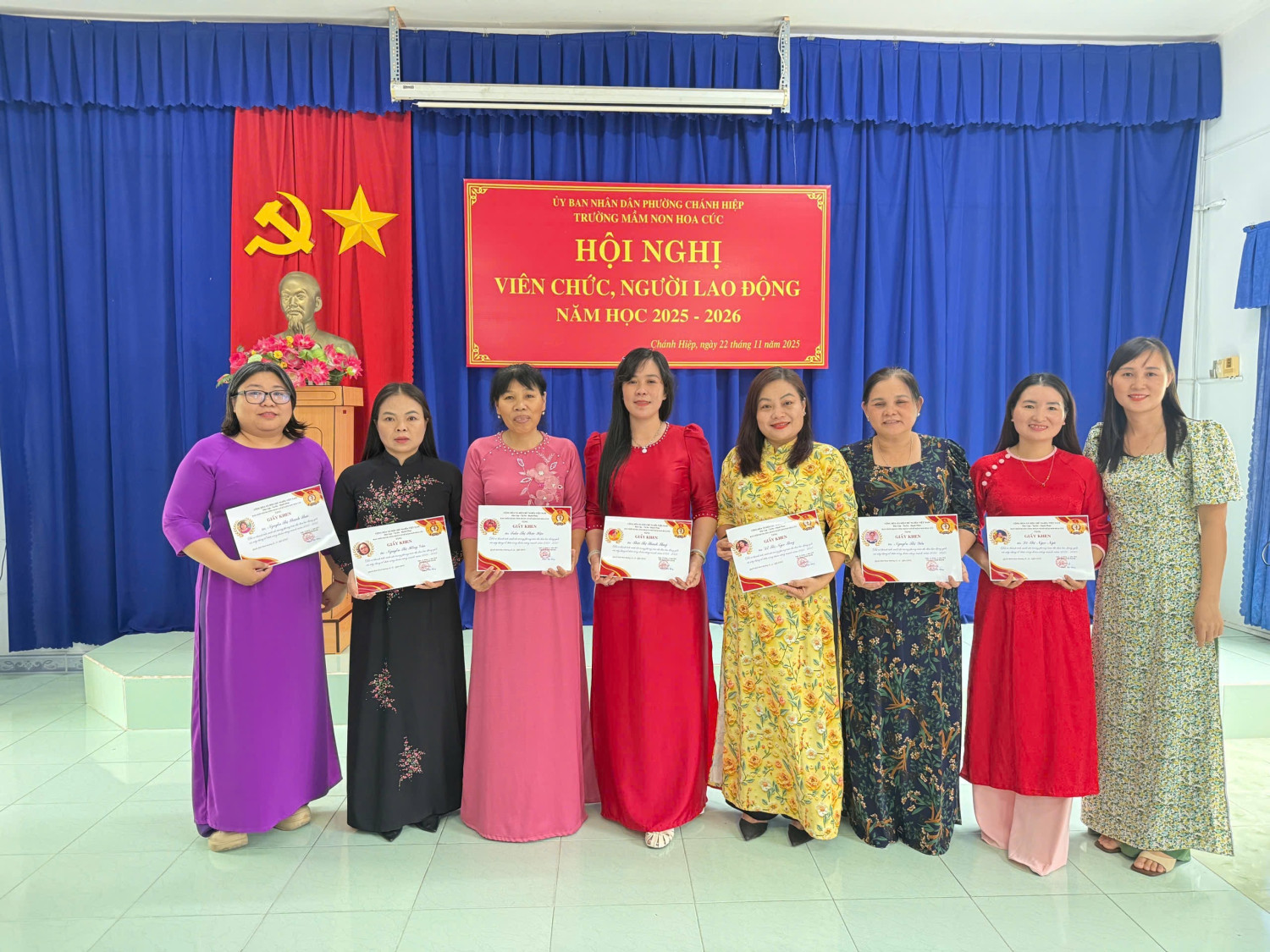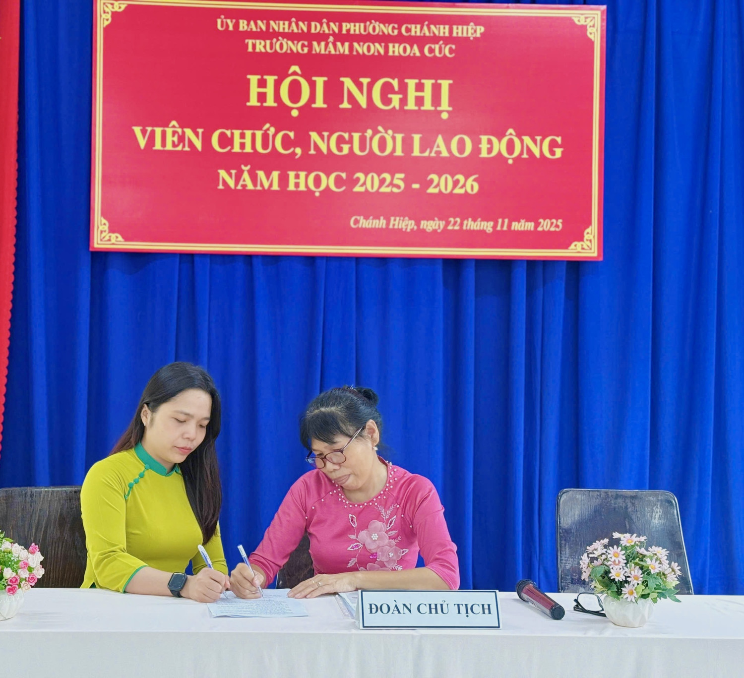 Sáng nay, Ngày 22/11/2025. Trường Mầm non Hoa Cúc đã long trọng tố chức Hội nghị Viên chức - Người lao động năm học 2025 - 2026. Hội nghị nhằm đánh giá kết quả thực hiện nhiệm vụ năm học 2024 - 2025 và thảo luận, thống nhất phương hướng năm học mới năm học 2025 -2026). Tại Hội nghị, Viên chức - NLĐ đã thẳng thắn đóng góp ý kiến xây dựng, thể hiện tinh thần đoàn kết - trách nhiệm