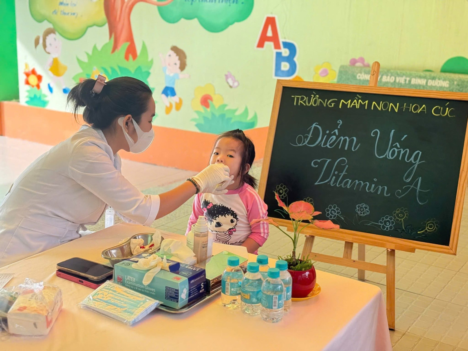 Sáng ngày 28.11.2025 Trường Mầm Non Hoa Cúc đã đã phối hợp với cán bộ y tế tổ chức chương trình uống Vitamin A cho tất cả các cháu trong độ tuổi quy định. Đây là hoạt động quan trọng trong công tác chăm sóc sức khỏe trẻ em, giúp phòng chống các bệnh liên quan đến thiếu vitamin A, nâng cao sức đề kháng và sự phát triển toàn diện của trẻ.