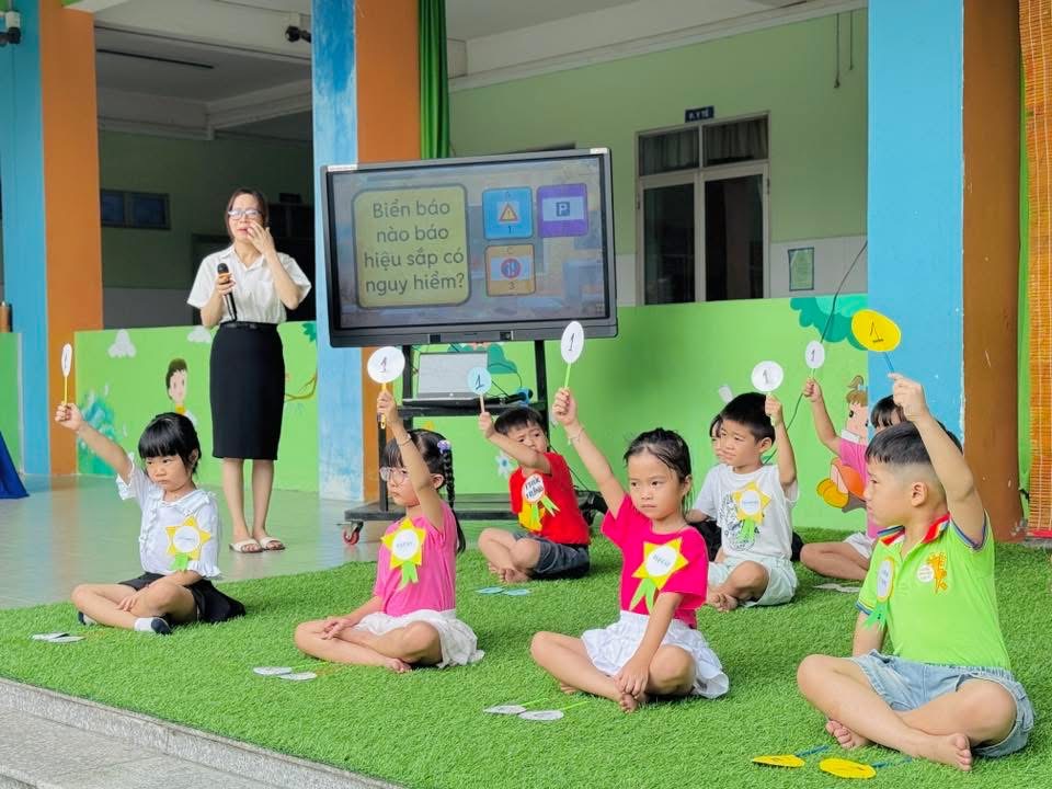 Tiếp theo là phần Rung chuông vàng, nơi các con tự tin trả lời những câu hỏi quen thuộc về an toàn giao thông.