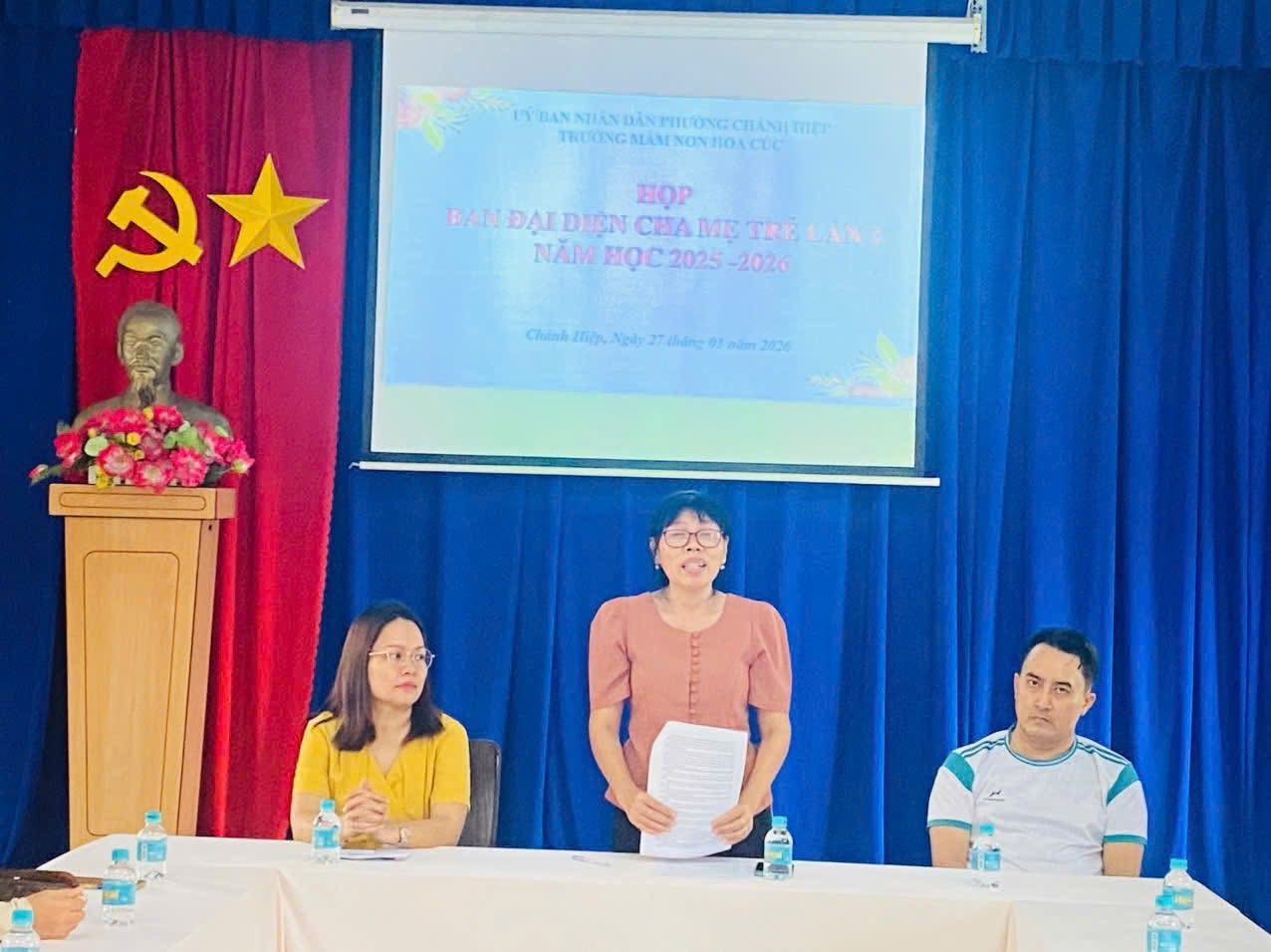 Nhằm tăng cường sự phối hợp giữa gia đình và nhà trường trong công tác chăm sóc - giáo dục trẻ trường mầm non Hoa Cúc đã tổ chức buổi họp Ban đại diện cha mẹ trẻ giữa năm học trong không khí thân tình, gần gũi. Tại buổi họp, nhà trường đã chia sẻ khái quát tình hình học tập của trẻ trong thời gian qua; đồng thời lắng nghe những ý kiến đóng góp, trao đổi từ Ban đại diện cha mẹ trẻ để cùng nhau thống nhất các nội dung phối hợp phù hợp, vì sự phát triển toàn diện của các bé. Buổi họp diễn ra ngắn gọn , nhe nhàng nhưng mang ý nghĩa thiêt thực, góp phân thắt chặt mối quan hệ gắn kết giữa gia đình và nhà trường trong hành trình đồng hành cùng các con.