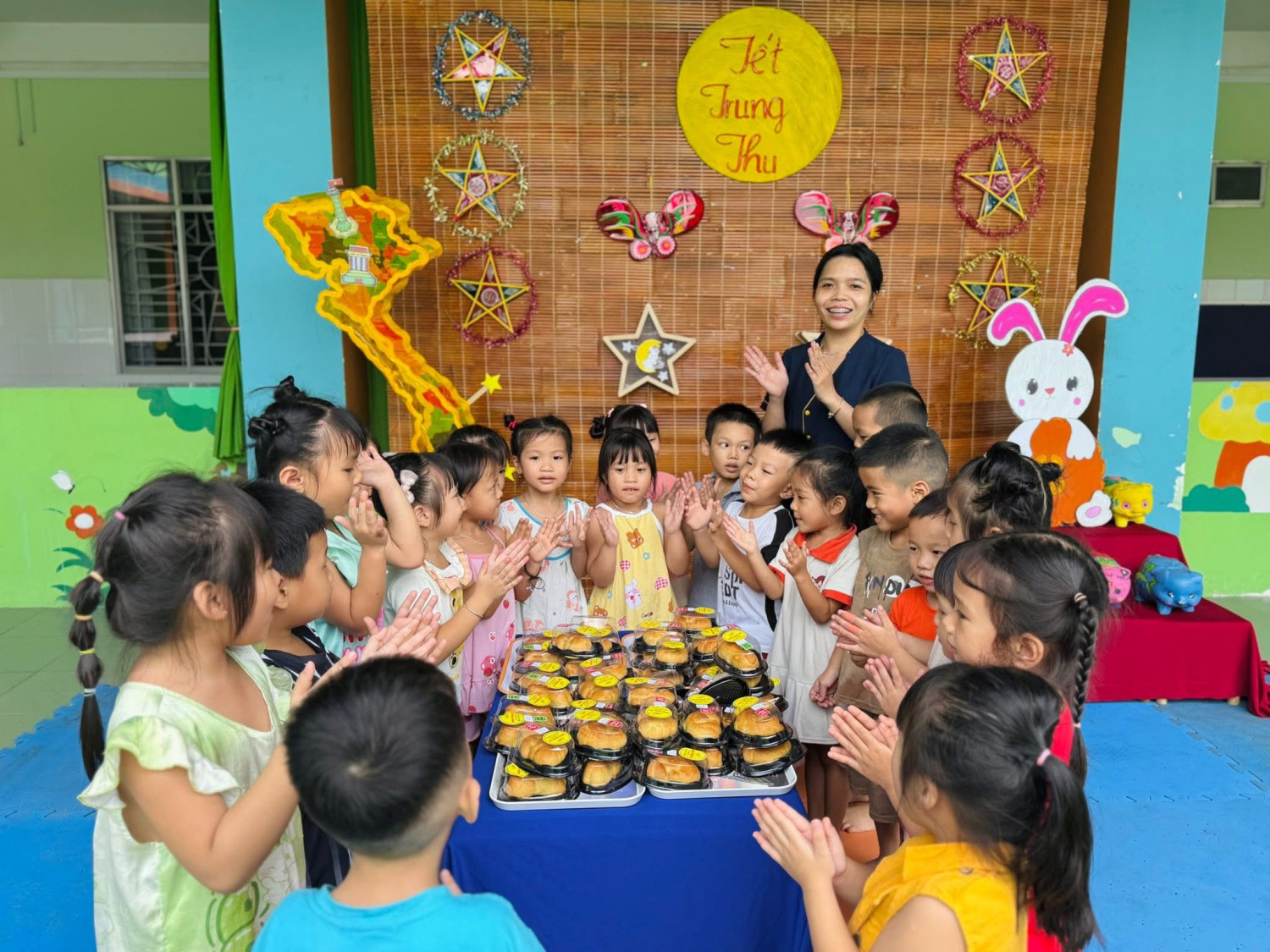 Mở đầu chương trình là những tiết mục văn nghệ do chính các bé biểu diễn, hồn nhiên, đáng yêu và tràn đầy năng lượng. Trên sân khấu, cô giáo hóa thân thành chị Hằng Nga dịu dàng và chú Cuội vui tính, dẫn dắt chương trình, mang đến nhiều tiếng cười cho các em nhỏ.